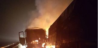 Ô tô tải bốc cháy trên quốc lộ 1A