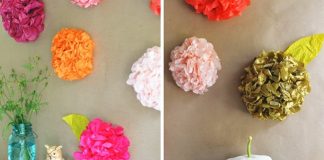 Trang trí tường với hoa làm bằng giấy màu